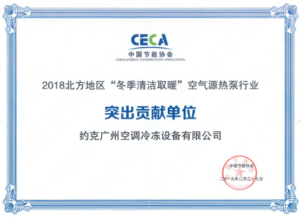 2018北方地区“冬季清洁取暖”空气源热泵行业突出贡献单位