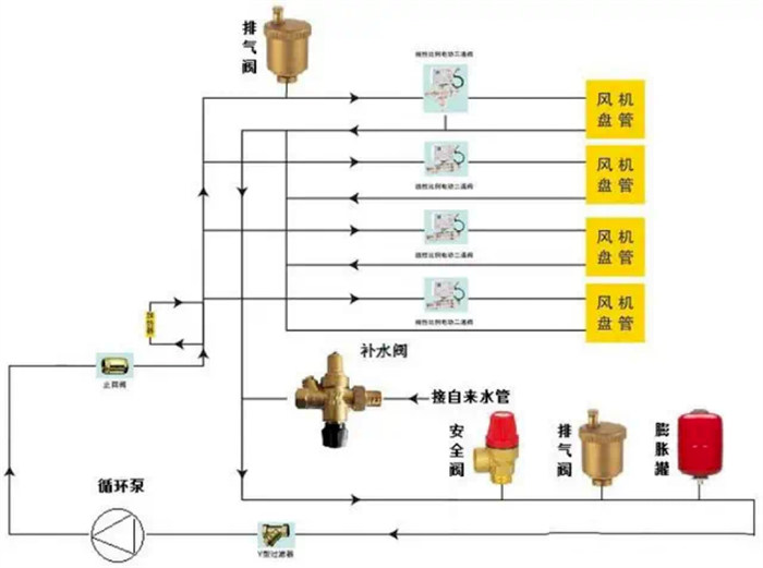 自动补水阀安装在闭式循环的供暖或制冷系统的补水管路上,可自动维持系统的压力为设定值,集减压阀、截止阀、止回阀功能于一体,可防止供热系统的热水回流到冷水管路,是系统定压补水不可或缺的一环